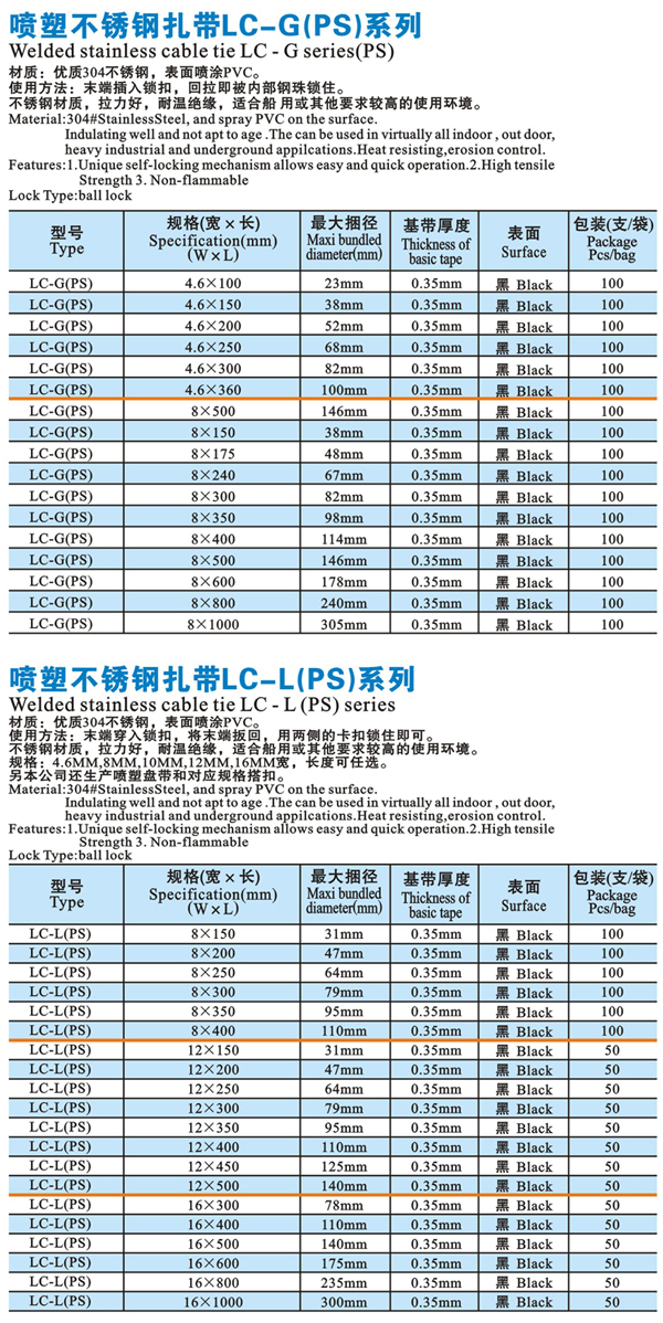 噴塑不銹鋼扎帶是在扎帶表面增加PVC涂層已提高抗腐蝕性能,可以適應(yīng)海洋等環(huán)境。